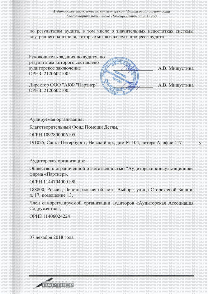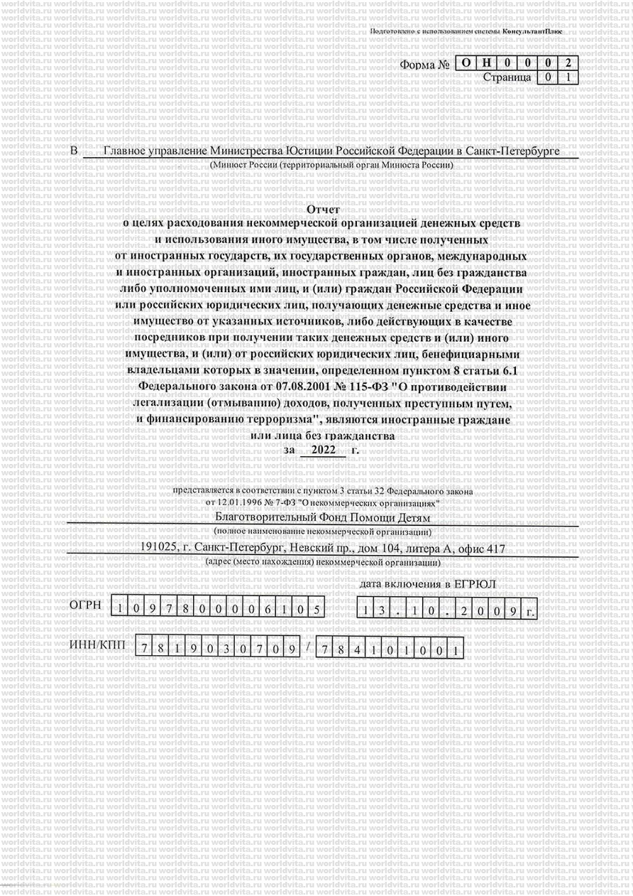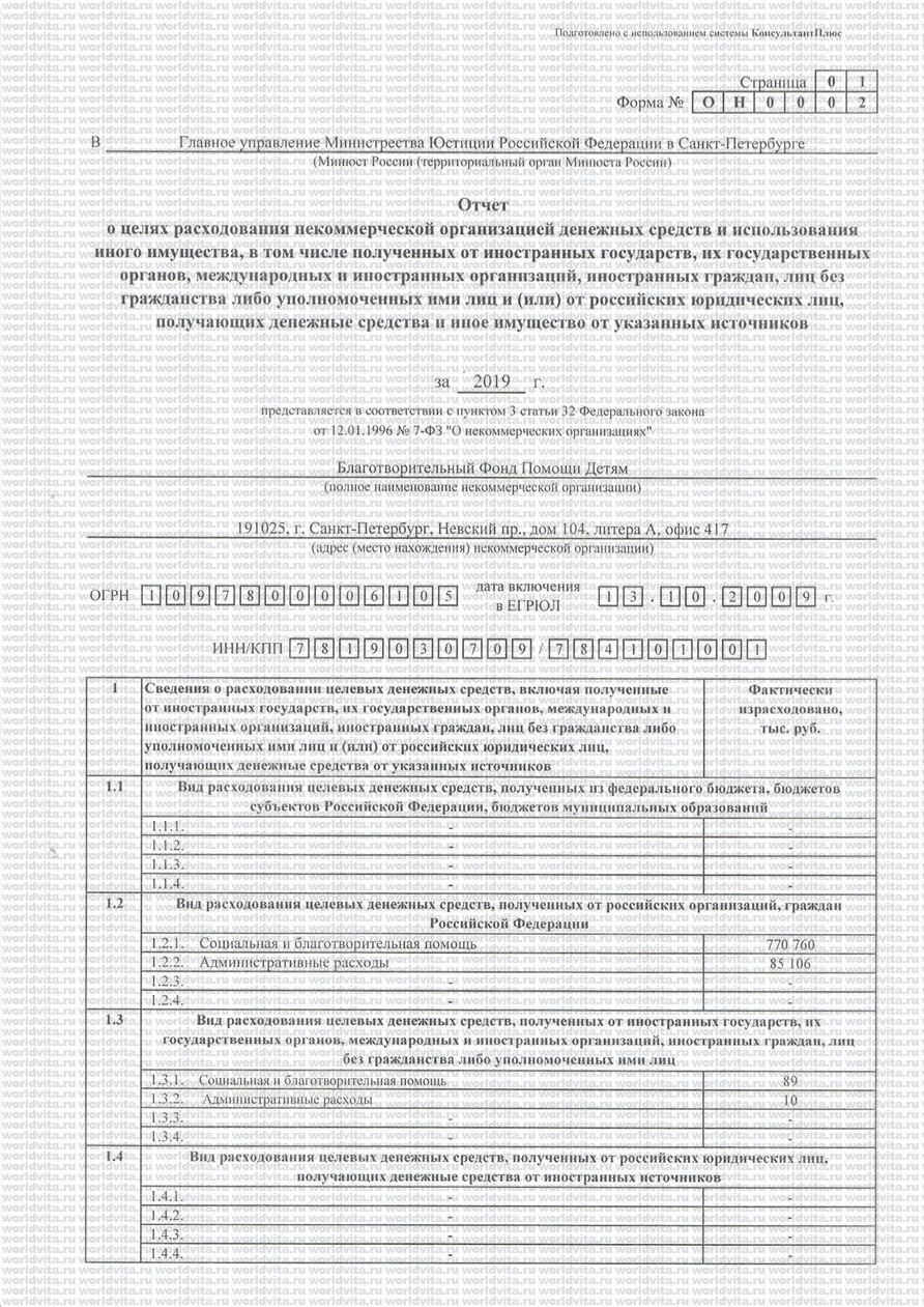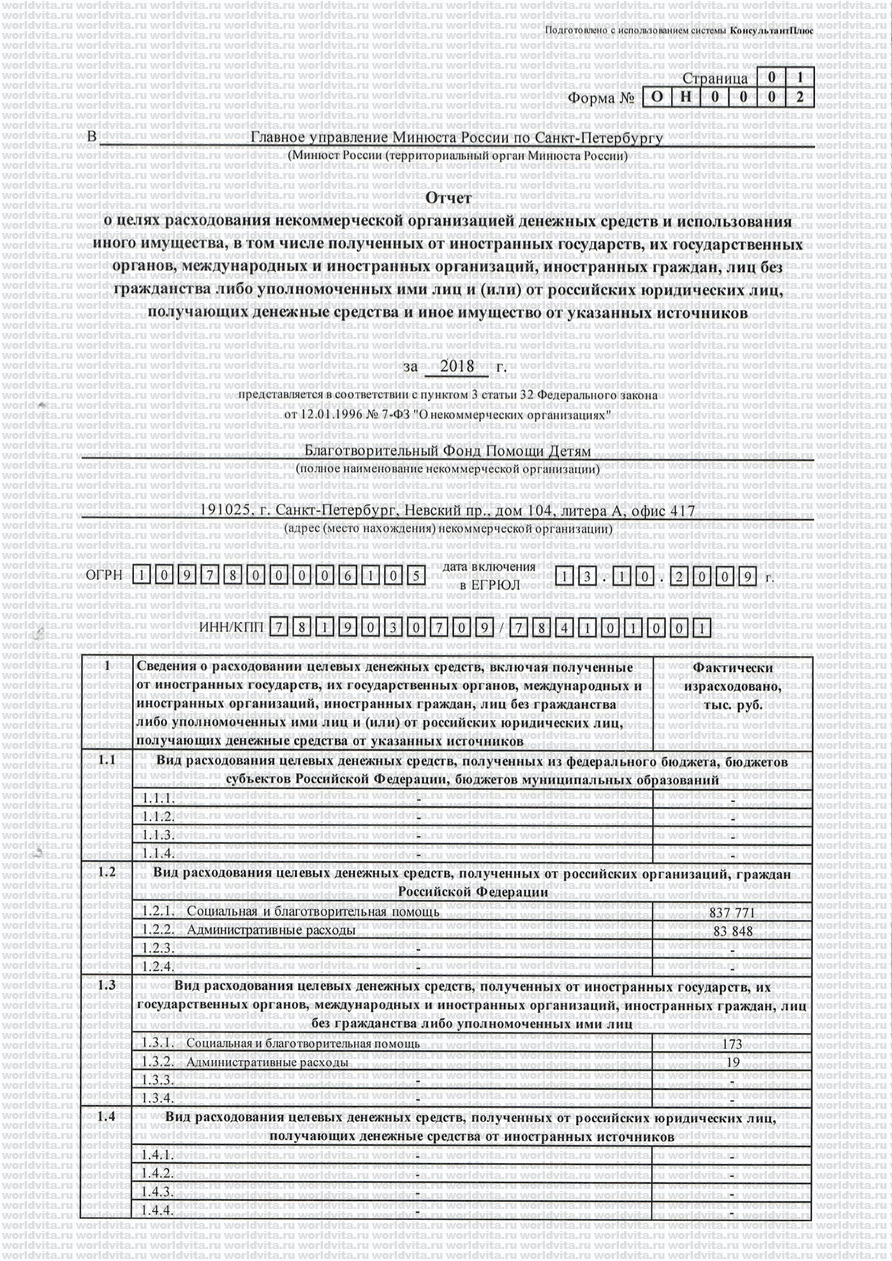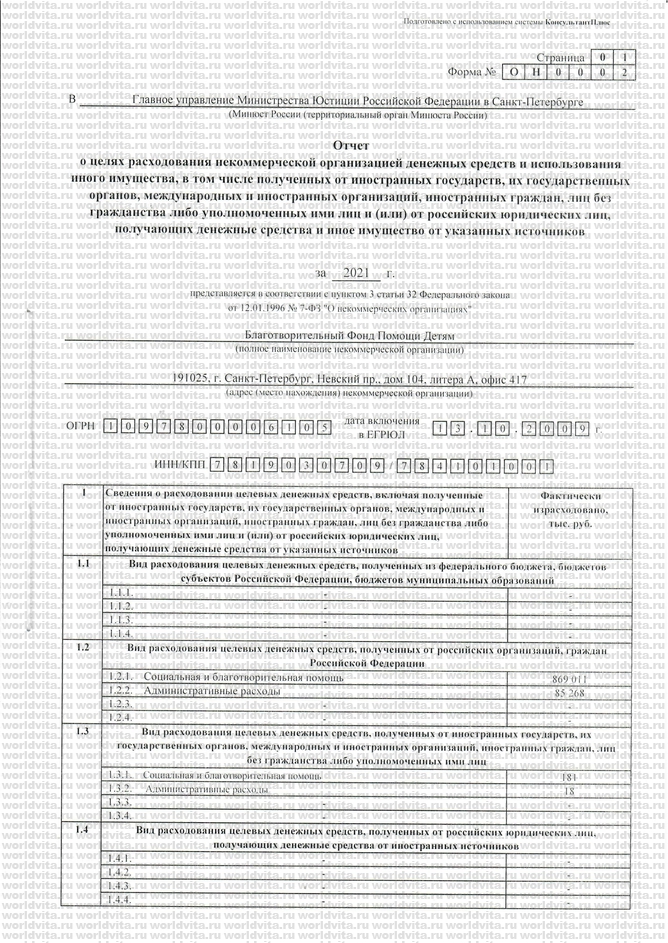 Все отчеты в Министерство Юстиции Российской Федерации вы можете посмотреть на официальном сайте используя учетный номер фонда: 7814011580.